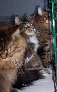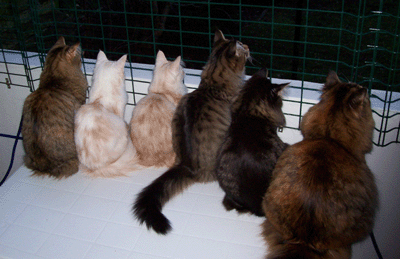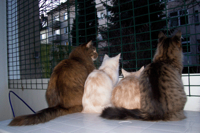 immer von links nach rechts/ nur die Katzen mit Kopf auf den Schultern