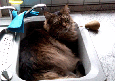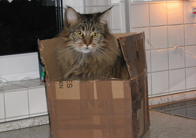 12.2007 der Schneider in der Kiste - für eine Maine Coon der ideale Aufbewahrungsort - ja, ganze Maine-Coon-Familien hätten in dieser Kiste Platz ...