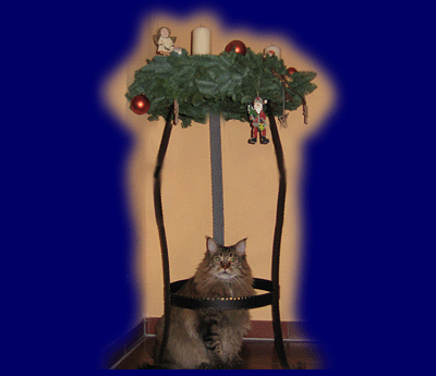 Weihnachten 2008 - erst hat er der Corinna beim Schmücken geholfen und dann hat er guuuut aufgepaßt, damit Markus nicht die Kerzen anmacht - ist doch gefährlich sowas ... Danke Ihr Zwei für die schönen Bilder. :-)