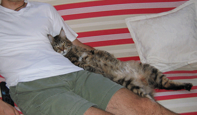 Das Schneiderlein ist natürlich läängst bei seiner neuen Familie eingezogen; und so schlagartig RUHIG wie es bei uns wurden SO schlagartig TURBULENT wurde es bei Corinna & Markus, Mäxchen, Herbie und Helios. Bilder oben: Nr 1 Schneider AM 1. TAG im neuen zu Hause (anscheinend ein sehr angemessenes Ruhelager, nicht wahr! Man achte auf den Gesichtausdruck!)