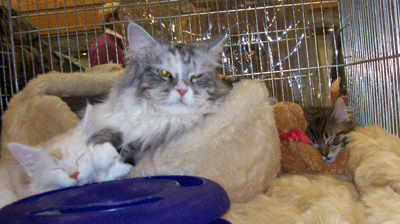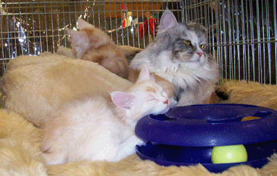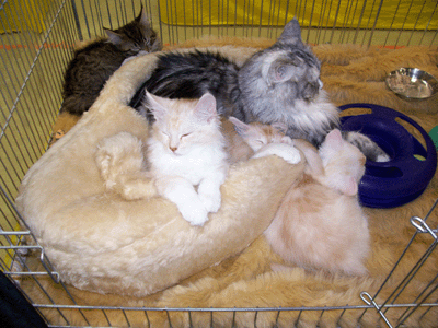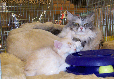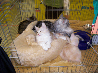 EveCoon Mrs Winterbottom war nominiert und hat am Samstag gegen ihren Bruder und am Sonntag gegen einen blauen Kater in der Best in Show verloren. (Die Babys werden bei uns nicht immer nach Geschlechtern getrennt.)