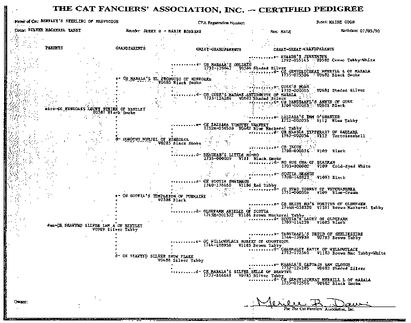Als die Eheleute Burkhol auseinander gingen, wurde auch das Cattery geteilt. Bentley ging mit 2 Damen an Herrn Burkhol; auch Frau Burkhol heiratete wieder; heißt heute Middelmann und züchtet unter dem Namen Dragonlord noch immer Maine Coon.