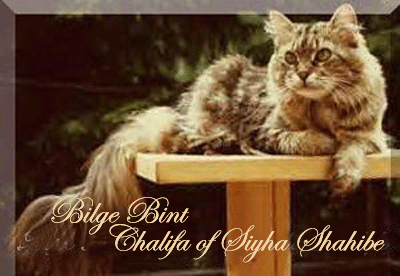 Nachruf für Bilge von Monika Kolb Berna Bint Chalifa of Siyah Sahibe starb am 03.09.1996. Der letzte Gang in ihrem Leben führte zum Tierarzt. Er erlöste die einst so stolze, prächtige und liebenswerte Kätzin von ihrem Leid. Ihr Körper war im hohen Alter vom Krebs zerfressen und abgezehrt. Ich hätte mir so gewünscht, daß sie einfach über Nacht eingeschlafen wäre; sie hätte es verdient. Eine eigentümliche Weisheit war in ihren Augen zu lesen. Sie wußte, daß es die letzte Fahrt in ihrem Erdendasein sein würde. Ohne zu klagen und tapfer - wie sie immer gewesen ist- trat sie ihren allerletzten Gang an. Zurück bleibt die Gewissheit, daß sie es wußte. In ihren herrlichen Augen war das Unaussprechliche zu lesen. Bilge, Du wirst mir so fehlen, etwas ganz Besonderes hat unser Leben verlassen. Das erstemal sah ich sie im Sommer 1993. Ich war auf der Suche nach einer Kätzin für unseren Kater. Als ich den Vorraum des Hauses der Familie Kretzer betrat, stach mir die schönste Kätzin, die ich je gesehen hatte, ins Auge. Wie eine Statue saß sie regeungslos auf einer Empore und musterte mich würdevoll mit großen, wunderschönen Augen. Ihr Ablick hatte etwas a-tem-beraubendes. Noch niemals hatte ich eine solche Schönheit zu Gesicht bekommen. Für einen Augenblick stockte mir der Atem. Ich blieb wie angewurzelt stehen, um dieses einmalige Bild in mich aufzunehmen. Schon damals wußte ich, daß diese Kätzin etwas ganz besonderes war. Ich traute mich garnicht, mich zu nähern. Die Würde dieses Tieres war für mich unantastbar. Im Lauf der drei kommenden Jahre sah ich sie noch mehrmals. Jedesmal stockte mir der Atem, wenn ich diese Schönheit sah. Ich bin niemals davon loskommen. Auch lernte ich in dieser Zeit ihren einmaligen Charakter kennen. Bilge begann mich auf hoheitsvolle Art zu begrüßen. Als ich das erstemal ihr seidenweiches Fell streichelte, konnte ich es kaum fassen. Mir war es erlaubt diese Köniin anzufassen. Sie schenkte mir Liebkosungen mit einer eigenartigen Würde. Ihre Bewegungen unterscheiden sich von denen anderer Katzen. Eine Beschreibung fällt schwer, sie war eine Lady und ihre Art ist als königlich zu bezeichnen. Noch immer kann mein Herz es nicht fassen: diesen Vorraum des Hauses zu betreten und die Empore ist leer. Zurück bleiben nur Bilder, einfache Fotogaphien die das Geheimnis um Bilge nicht widerspiegeln können. Seit 1993 habe ich eine Urenkelin von ihr in meinem Haus. Ich bin stolz einem ihrer Nachkommen meine Liebe schenken zu dürfen. Bilge, Du bleibst für mich unvergessen. In meinem Herzen wirst Du immer weiterleben. Niemand kann mir die kostbaren Augenblicke mit Dir wegnehmen. Ich hoffe so sehr, daß Du nun auf einer satten immergrünen Wiese spielst, eine warme Briese Dein Fell wehen läßt und Du mit bunten Schmetterlingen um die Wette läufst.