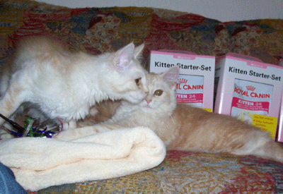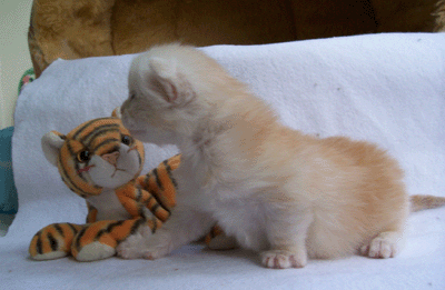 Munglejerry (rechts) ging es wirklich sehr, sehr schlecht. Er ist aber jetzt wieder gesund - ist nur ziemlich hinter seinen beiden Geschwistern zurück geblieben. Jetzt gibt er richtig Gas und holt gerade ganz schnell auf ... :-) Er hat ein ausgesprochen sanftes Gemüt. Seine Geschwister spielen jetzt wieder mit ihm - aber immer noch gaaaanz vorsichtig und rücksichtsvoll. So sind Coonies eben!
