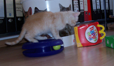 ... also, erst mitten Trick und dann mitten Ruck - und schon haben wir ein 8-Wochen-Foto ... v.l.n.r Ratzmataz, Munglejerry & Rumpleteazer.