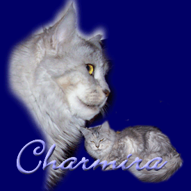 Auf Ausstellungen wird von den verschiedensten Richtern vor allem ihr sehr typvolles Erscheinungsbild gelobt. Sie hat immer ihr Pünktchen bekommen - auch wenn sie relativ schlank ist. Charmi hat schon Best in Show und einen Sonderpreis gemacht - “diese Katze hat alles was man als Coonie braucht!” (Originalzitat Herr Meister).