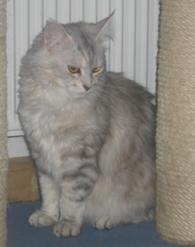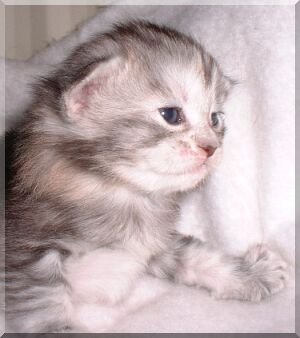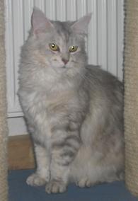 Mit den Babys ging eine wunderbare Veränderung einher: sie gewinnt nicht nur an Masse, auch der Typ verstärkt sich deutlich: das ausdrucksstarke Gesicht ihres Vaters, die Beine und Pfoten vom Papa - alles rutscht nun in die richtige Richtung. Sie wird eine wunderbare Katze.