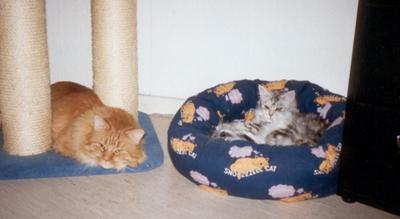 Ein Bild häuslichen Friedens: Charmira (ca. 6 Monate) mit Liebling Sam.