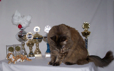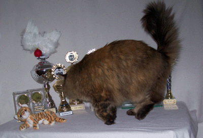 ... O.K. weiter geht’s: Cat Show Winner! Das bin ich! - der Pokal war sicher schon in den vereinigten Emiraten/ Dubay City - Danke, danke, danke - er ist wunderbar !!!