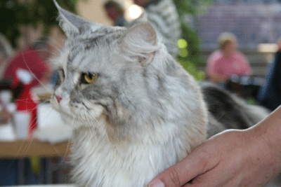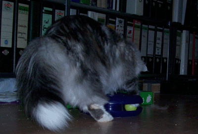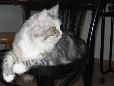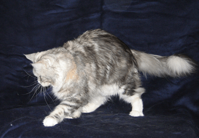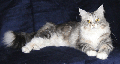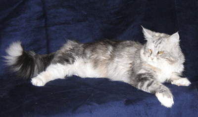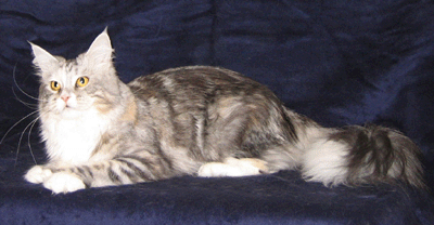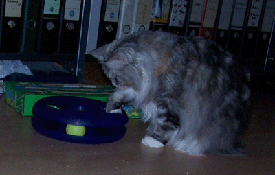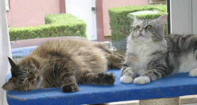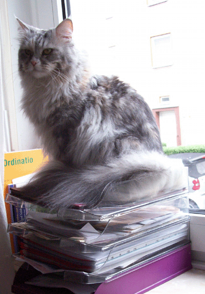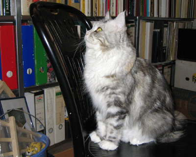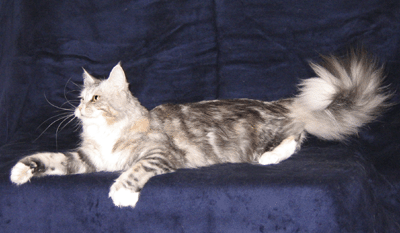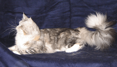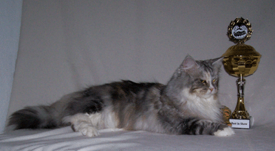 Als kleiner Katze ging es Falballa nicht sehr gut; befreundete Züchter haben die kleine Motte liebevoll und mit viel know how in Sachen natürlicher Medizin wieder auf den Damm gebracht. Falballa entwickelte sich zu einer prächtigen Maine Coon Dame. Natürlich hatten sich ihre Wohltäter in diese hinreißende Katze und ihren liebenswerten Charaker verliebt. Zum großen Bedauern der Züchter (die nicht genannt werden möchten), konnte die Katze auch nicht in der Zuchtgemeinschaft plaziert werden. Vermutlich paßte sie einfach vom Typ her überhaupt nicht zu den vorhandenen Tieren. Schweren Herzens mußte die Katze also wieder abgegeben werden.