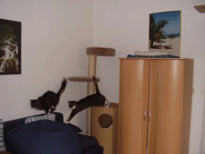 Barbeli mit Louis beim toben “über Tisch und Bänke” ... 11.2007 Danke, Iris für diese schönen Fotos - ich bin sehr glücklich über Dein gelungenes Katzenglück :-))