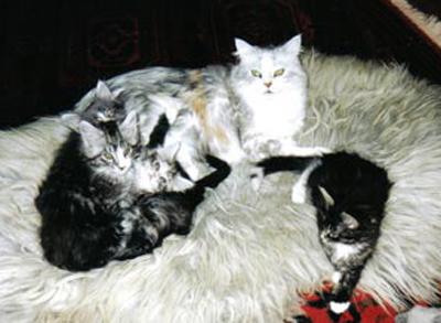 Da sie - trotz exzellentem Stammbaum und bester Bedingungen - keine Babys bekommen kann, hat sie im Rudel keinen festen Platz in der Rangordnung. Am Ende der Gruppenstruktur ist sie als nicht-kastrierte Katze in einer unmöglichen Situation. Eigentlich sind die Kastraten das “Schlußlicht”. Da aber alle meine kastrierten Tiere sich sehr gut behaupten können und Ginger sich niemals wehren würde, ist sie das Schlußlicht. Selbst Jingel Bells, die sich auch nicht richtig wehrt, ist noch vor ihr. Wenn Ginger Babys bekommen könnte, würde sie als “Queeny” in der Rangordnung automatisch aufrücken. Dieser Wunsch ist uns nicht erfüllt worden. So kann es eben gehen. Wir haben es mit Lebewesen zu tun und nicht mit Maschinen. Das müssen wir alle akzeptieren. Zu allem Unglück kommt noch die Tatsache, daß sie sehr gerne Babys haben würde. Die anderen bekommen Babys und sie nicht (?!) - das tue ich der Katze nicht an.