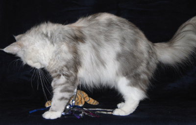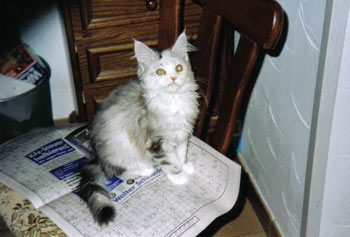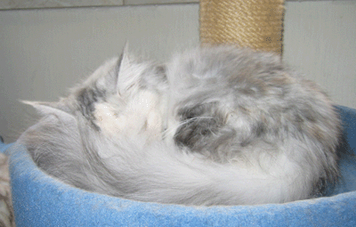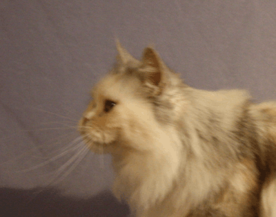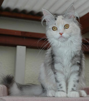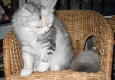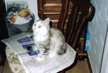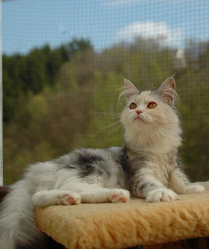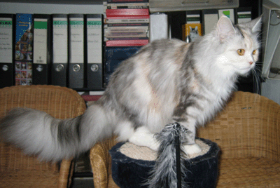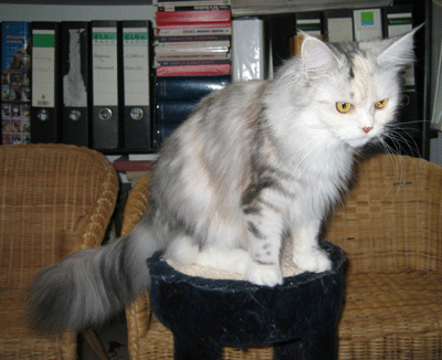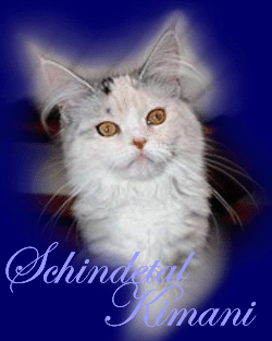 Kimba ist jetzt ein Jahr alt. Charakterlich ist sie nicht zu toppen. Sie interessiert sich für ALLES und ist überall zu Hause. Busfahren, Tierarzt, Mutti besuchen alles ist super-toll ... sie schnurrt und pfotelt wie verrückt, wenn es etwas neues zu erleben gibt. Als echte Zucker-Schnecke kann sie Mensch und Tier umgarnen und bekommt so - selbstverständlich ! - alles, was sie will. Vor allem Sam ist ihr hoffnungslos verfallen. Sie hat ihm über den Verlust seiner Ninivee nicht nur hinweggeholfen, seit ein paar Wochen lacht Sam wieder. Das habe ich Kimba zu verdanken.