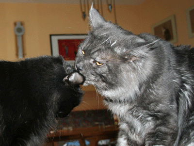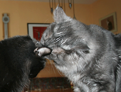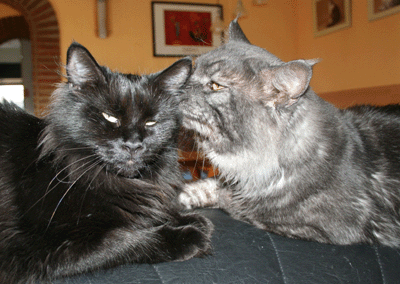 Ursula wurde von einer ihrer absoluten Lieblingskätzinnen Jenever mit deren letztem Wurf noch einmal reich beschenkt. Es war die schwarze Schönheit, die Ursula sich 20 Jahre lang nach Berna noch einmal gewünscht hatte: “Little Berna Nayeli” bedeutet kleine Berna ich liebe Dich (Nayeli ist Kisuaheli) Bilder 2005 bis 2007.