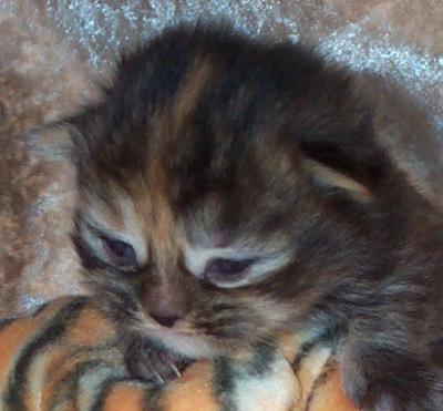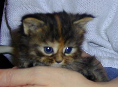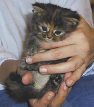 Sie hat einen roten Streifen von der Nasenspitze bis hinter die Ohren und war damit im Wurf sehr leicht herauszufinden. ... wenn Mimi die Nase “kraus zog” verschob sich der rote Streifen zu einem wunderbaren Fragezeichen.