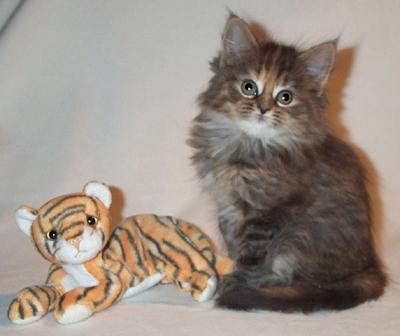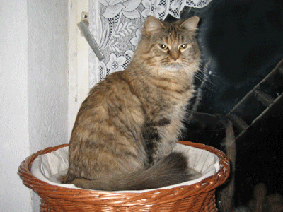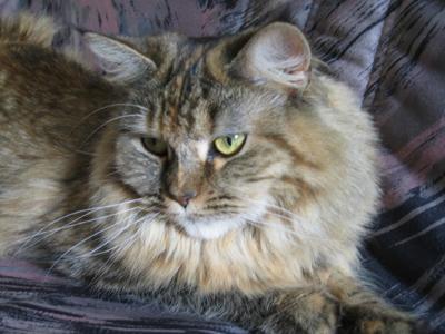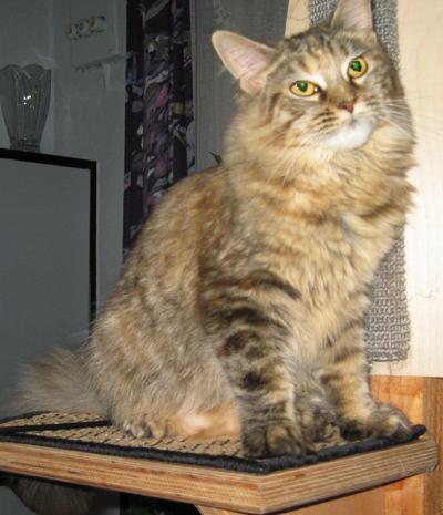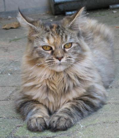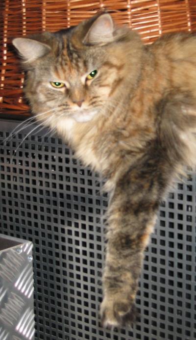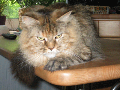 Mimi ist in den ersten beiden Lebensjahren zu einer stattlichen Dame herangewachsen und die eheliche Treue von Ninivee zu Sam wird nun auch nicht mehr in Frage gestellt. Sie ist - wie man sieht - eine blitzsaubere Maine Coon des alten Typs.
