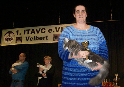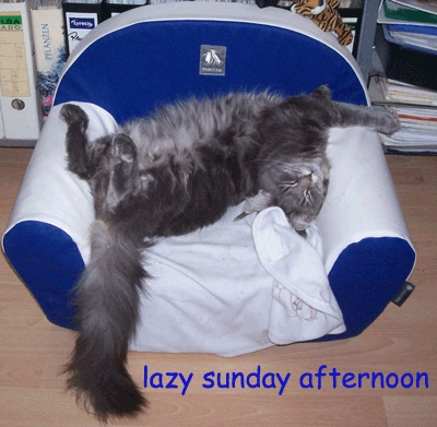 so, nu, iss`es passiert ... 1/2 Jahr habe ich versucht mich gegen das kleine “blaue Wunder” zu wehren - wie man sieht, ohne Erfolg ... Liebste Danni - ich bin sprachlos, vielen Dank für Deine Erstgeborene. Meine Lieblingskatze von Dir, dein “Wumm”, hat mir den “letzten Katzen-Wunsch” nach einer Blautabby erfüllt. Danke, Danke, Danke ... sie ist so süß !