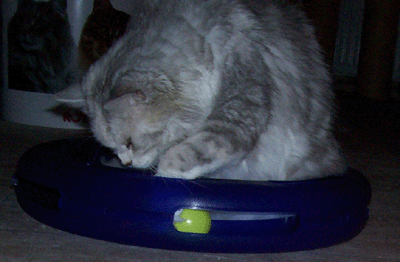 ... 2008/ bei Freßnapf gab es diesen Riesenkringel: 45 cm im Durchmesser ... und da konnte Roxi wohl nicht widerstehen ... ERWISCHT Nr.: 1 !!! mit 10 Jahren verspielt wie ein kleines Blach ... aber mit wissenschaftlicher Genauigkeit ... :-)))