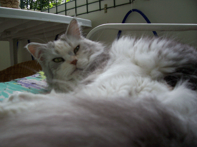 Ein erstes Foto mit Tochter Kimba (die hat gerade eine gaaanz seltene Reaktion auf ein Entwurmungsmittel und sieht etwas gerupft aus). Wir hoffen auf das ultimative Foto Roxi mit Kimba, Bella & der Missis - da fallen Euch aber die Augen aus dem Kopf, das sag ich Euch :-)))))