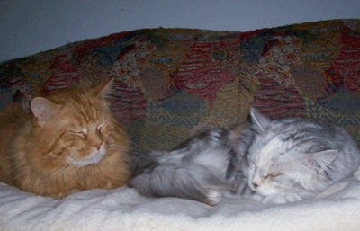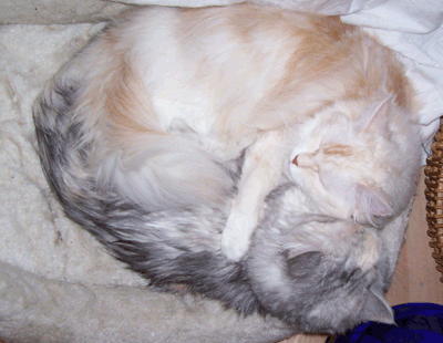 Nach einem ersten Deckversuch paßt Sammy ziemlich gut auf ... Roxi liegt im Körbchen dahinter ... seine Roxi - sieht man doch :-)