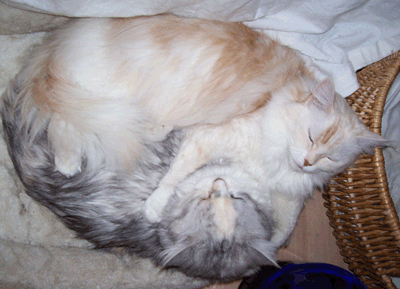 Selbstverständlich (!) hoffen wir alle, daß aus dieser wunderbaren Verpaarung eventuell noch Babys kommen. Hier haben sie jedenfalls die Ruhe weg. Sam & Roxi lieben sich sehr - wie ein altes Ehepaar. Sam und auch der kleine Jerry küssen den Boden, auf dem Roxi gegangen ist. Und Roxi guckt Sam immer mit Herzchen in den schmachtenden Augen an.