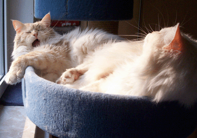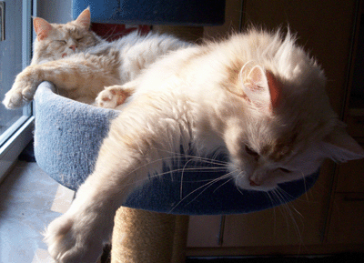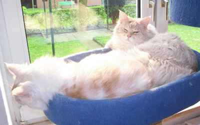 Rumpleteazer und Winterbottom an den ersten wirklich sonnigen Tagen diesen Jahres ... aber sooooooooooo müde ...