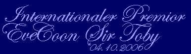 12.2007 Mit einer, nein, zwei dicken, fetten Tränen im Auge mußten wir Toby kastrieren lassen - er meinte wohl rumferkeln zu müssen ... soooo schade .... dafür geht er jetzt 2 - 3 mal mit auf die Ausstellung, naja, zum fürchterlich angeben eben :-))) er ist traumhaft schön geworden, sie werden ja sehen.