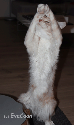 .... er ist so süß ... wenn er wach wird und gerade niemanden von uns sieht, fängt er an wie eine Gans zu trompeten, bis sich jemand meldet ... dann kommt er sofort angerannt auf seinen langen Stelzen und muß mit allen buckern und Köpfchen-geben ... 12.2013