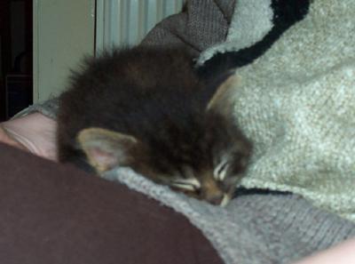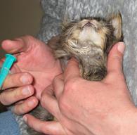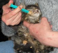 Zwischenzeitlich ging es Tucker gar nicht gut - er wurde gefüttert und gefüttert und gefüttert. Auch heute stellt er sich noch in der Reihe an, wenn die Babys zusätzlich Milch zu futtern bekommen. Man muß nur die Einwegspritzen herausholen, etwas mit den Töpfchen klappern - schwupps - schon steht er bereit. Medizin oder Milch, ganz egal - Hauptsache auf’ m Schoß und gefüttert.