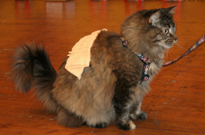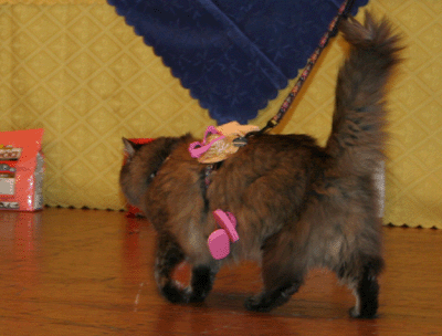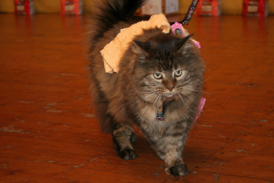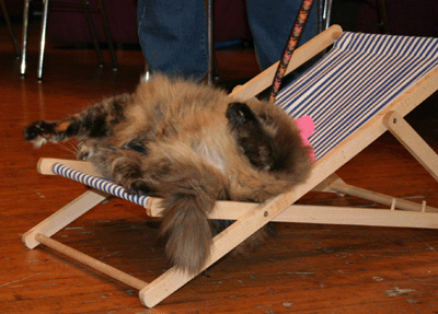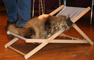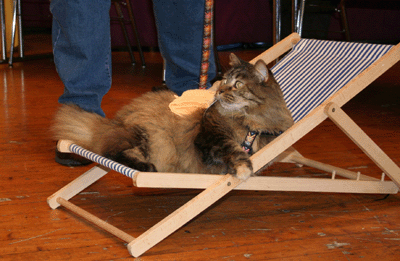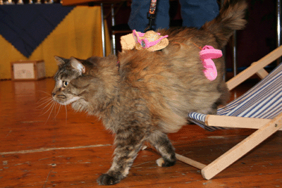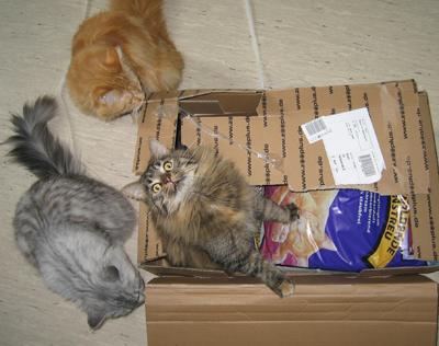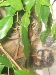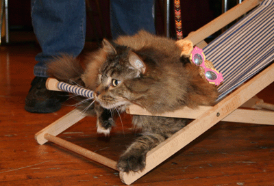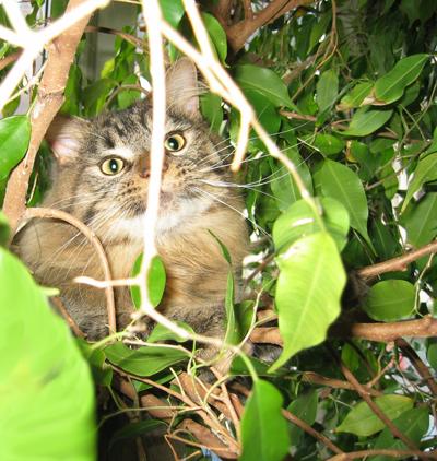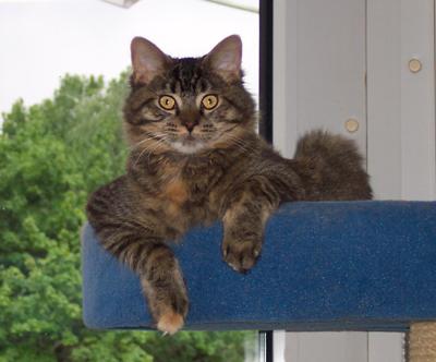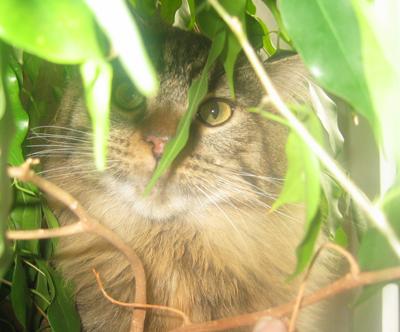Naja, und dann kam der Sommer 2003, Tucker ist 6-10 Monate ... und der lebende Beweis, daß die Maine Coon doch (!!!) vom Waschbär abstammt :-)